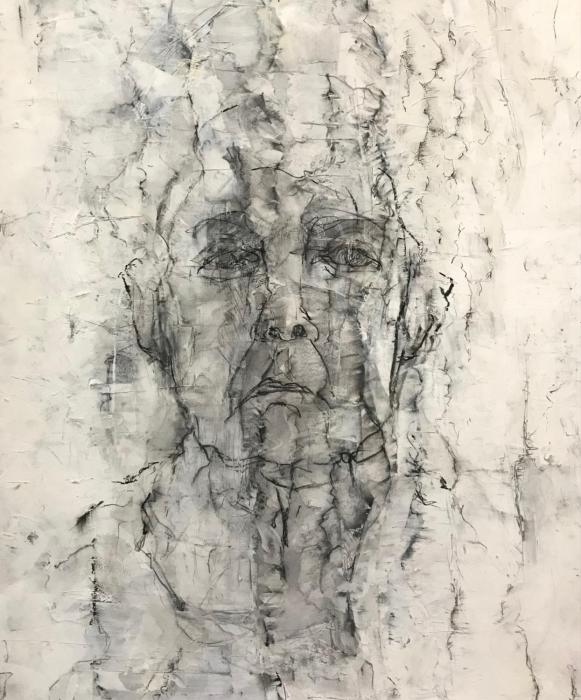 Behind the Curtain 19" x 22" Plaster and Charcoal In the Memory Care Unit, Anna peers out the window waiting for her son. available